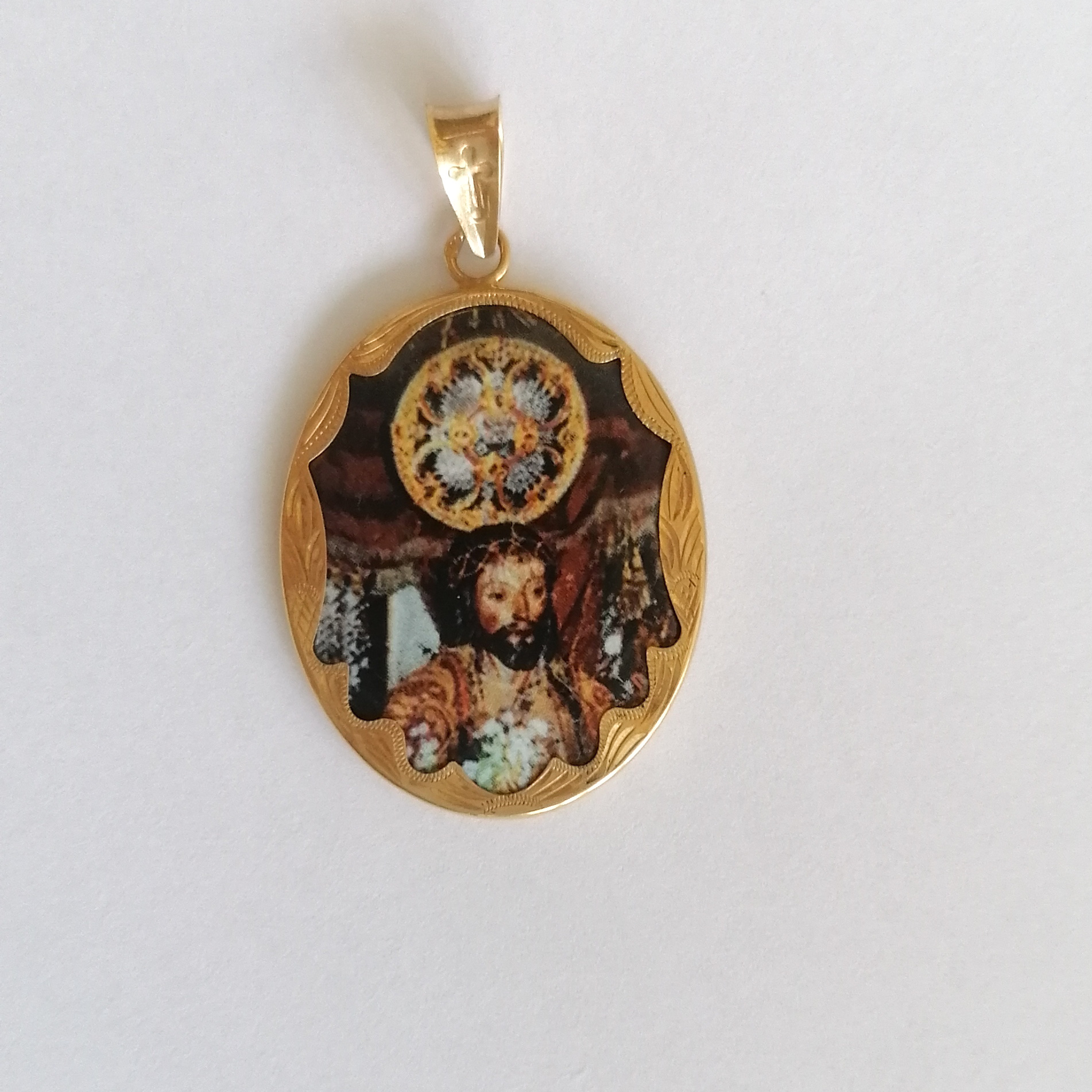 Medalha Stº Cristo dos Milagres Esmalte/ouro