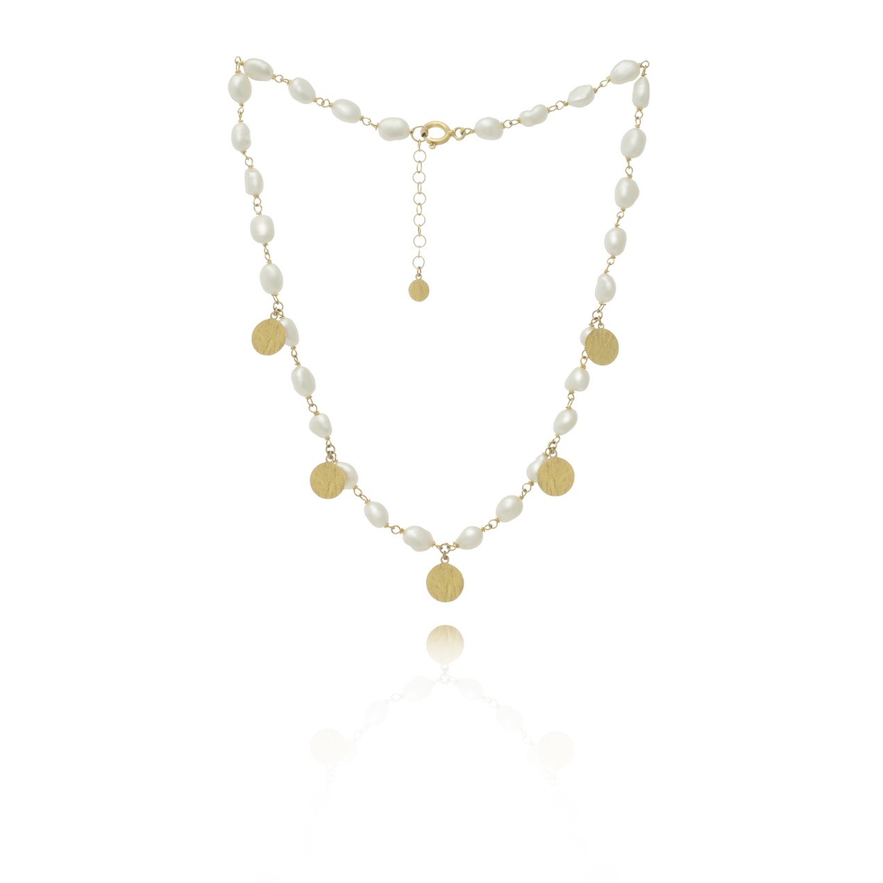 AIM jewellery Colar Gargantilha Dourado Pérolas 5Chapas Acetinado Riscos PRV.1400