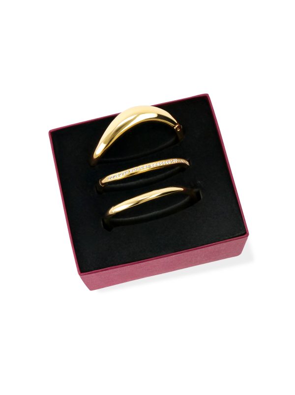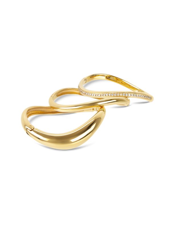 O set de pulseiras escravas da coleção Infinity é capaz de elevar um look em vários níveis. O set é composto por três escravas douradas todas com a sua forma única: uma dourada mais grossa, outra mais fina e uma terceira igualmente fina porém integralmente cravada de cristais zircónias brancos. Todas as peças contam com um fecho para facilitar a sua colocação e seguem o design em ‘S’ característico desta coleção de joalharia One.