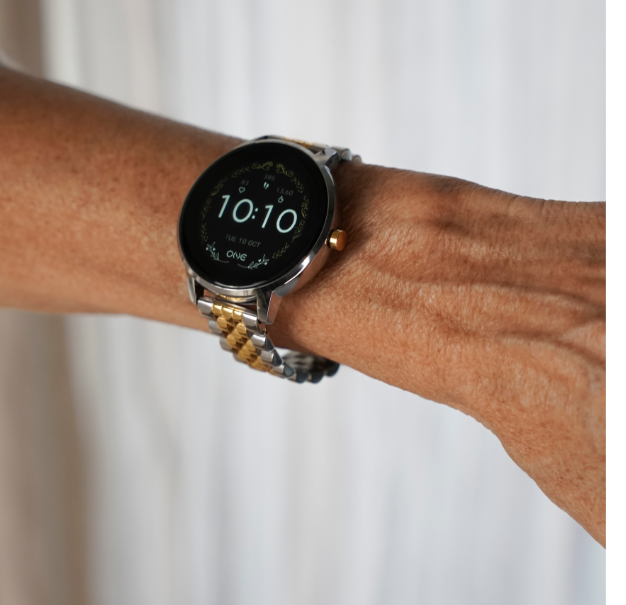 O smartwatch Queencall bicolor da geração 3 com bracelete de elos também bicolor segue a tendência mix and match entre dourado e prateado. Entre as várias características já existentes noturos modelo de smartwatches Ones, o modelo Queencall é pioneiro ao ter a capacidade de fazer e receber chamadas via Bluetooth. O mostrador redondo pode ser personalizável com um dos os 8 displays com ADN ONE ou com uma imagem presente na galeria de fotos do telemóvel. Poderás sempre personalizar o smartwatch com as braceletes que temos disponiveis em mesh e silicone, o que permite combinar o modelo perfeito para qualquer ocasião. Compatível com a APP One Time Pro. Os smartwatches ONE são uma escolha excelente para aqueles que procuram um relógio inteligente com características avançadas e um design elegante e personalizável. Perfeitos para quem deseja manter-se ativo e conectado.